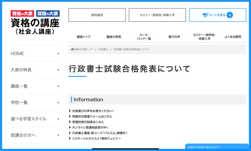 ❺資格の大原(行政書士試験)合格発表情報