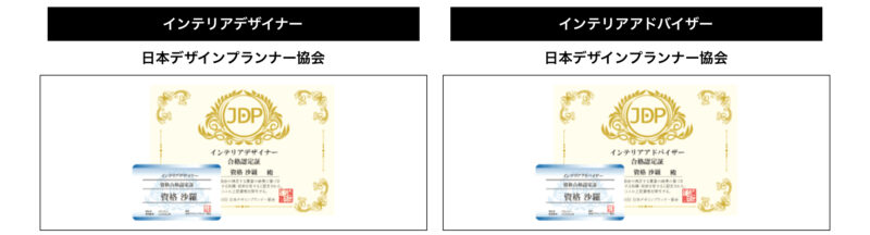 なんといっても人気資格が講座修了で試験合格不要で100%取得できる!試験を受けずに インテリアデザイナーと インテリアアドバイザー の資格を同時に取得できます。すぐに名刺に入れて資格を活用できます。
