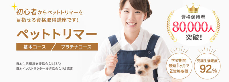 ❶ 講座名:ペットトリマー資格プラチナコース(オンライン)