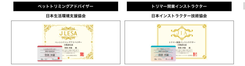 なんといっても人気資格が講座修了で試験合格不要で100%取得できる!試験を受けずに ペットトリミングアドバイザー と トリマー開業インストラクター の資格を同時に取得できます。すぐに名刺に入れて資格を活用できます。