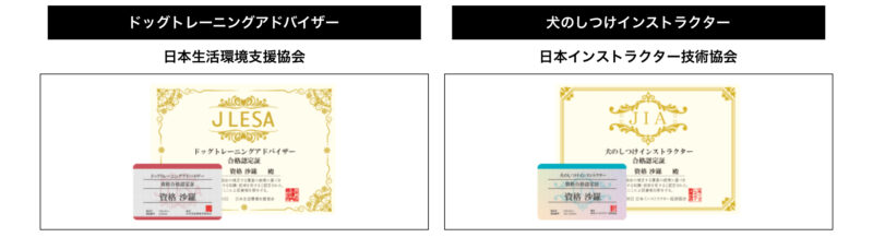 なんといっても人気資格が講座修了で試験合格不要で100%取得できる!試験を受けずに ドッグトレーニングアドバイザー と 犬のしつけインストラクター の資格を同時に取得できます。すぐに名刺に入れて資格を活用できます。