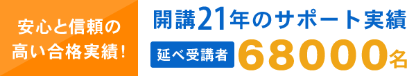 安心と信頼の高い合格実績!開講21年のサポート実績で延受購者68000名