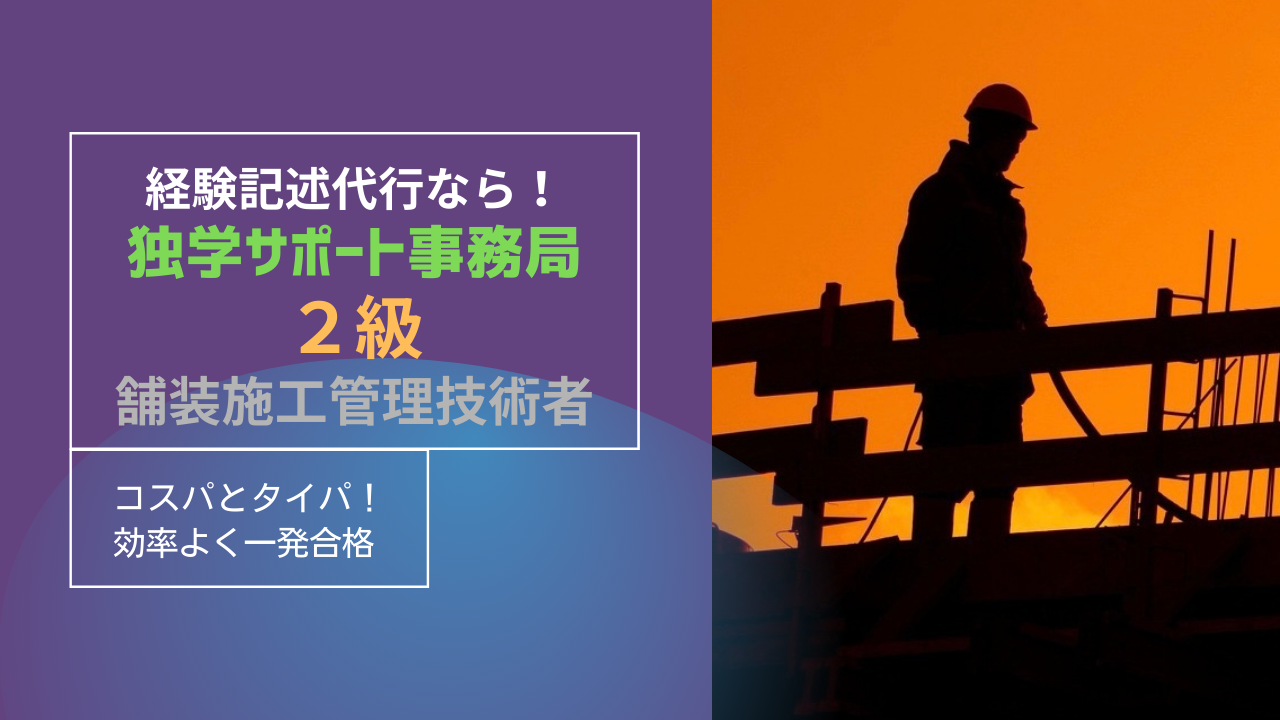 舗装施工管理技術者の勉強をして知識はあっても、現場の経験が乏しいという方への救世主が、独学サポート事務局が提供する記述添削と経験記述作文代行サービスです。