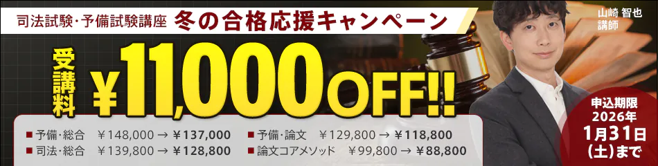 | WEBテキスト | 基本講座の各回にWEBテキストが付きます ・憲法 ・刑法 ・民法 ・民事訴訟法 ・刑事訴訟法 ・商法 ・行政法 |