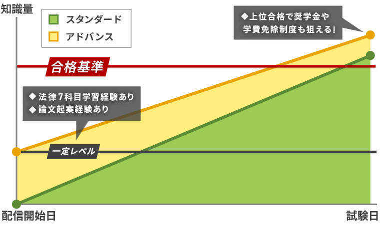 既に基礎知識がある学習経験者が、改めて総合的な知識の整理・再構築をしつつ、司法試験論文式試験に向けた演習をおこなうカリキュラムです。 インプットは最小限にとどめ、論文式試験に重点を置いた内容となっているため、既に基本的知識や基本的な論文答案の書き方を習得済みの方には高いパフォーマンスを発揮します。