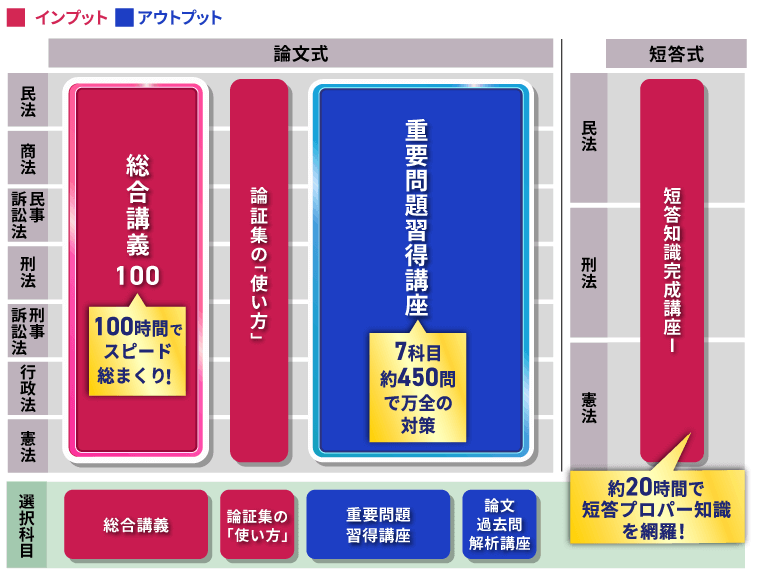 学習経験者が、司法試験に向けて、「短時間で」論文対策・短答対策に向けた知識の穴を埋め、知識を「再整理」するためのカリキュラム