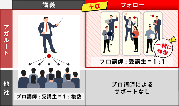 最強講師陣の解りやすい講義と充実したフォロー体制により勉強を継続し習慣化できることこそがアガルート司法試験講座の強みです。