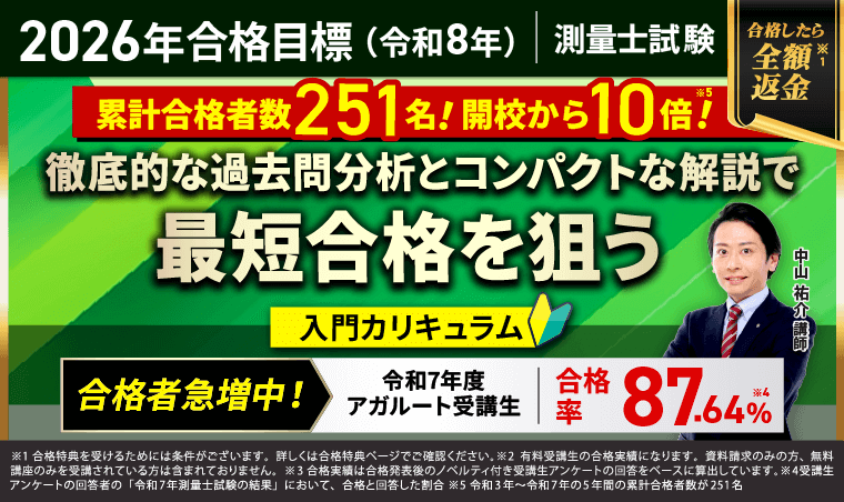 2025年(令和7年)測量士試験の合格率を公表している予備校・講座について、合格者数をランキングしました。講座の実力が一目瞭然になりますが、実は現在はアガルートだけが合格率を公表しています。