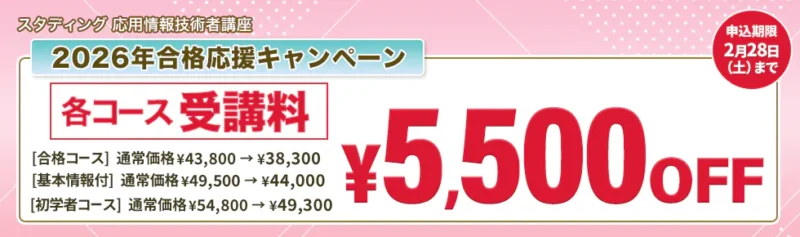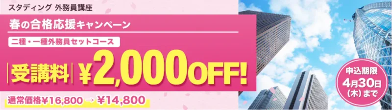 スタディングでは講座ごとに期間限定で割引キャンペーンを実施しています
