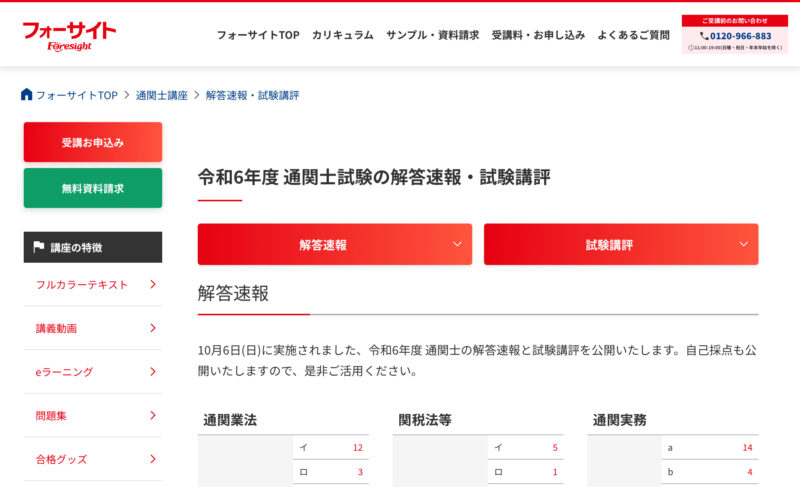 ❶フォーサイト【通関士試験】解答速報