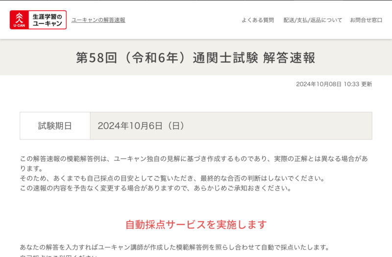最新!2025年10月【通関士試験】解答速報ランキング