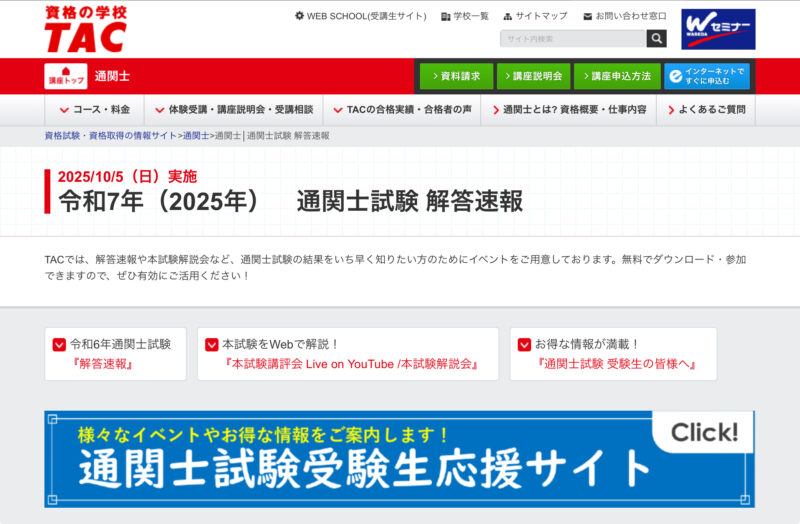 TAC 通関士試験 解答速報【公式】